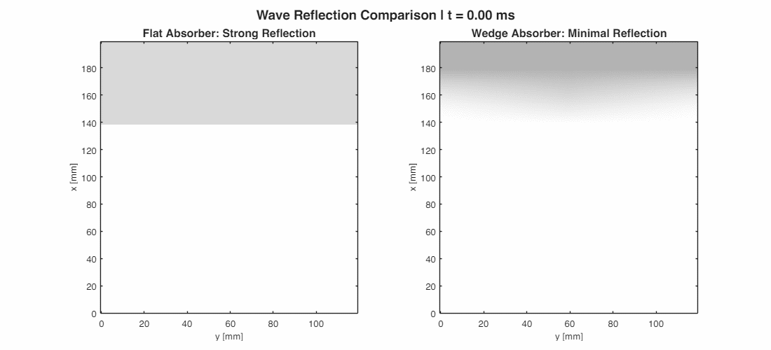 - Anechoic Wedges: If you have seen photos of “dead rooms” (anechoic chambers) used for testing microphones, you have seen walls covered in deep, sharp wedges. These wedges provide a gradual impedance transition from air ($Z = 415$ Rayls) to the absorptive core. By slowly increasing the material density, reflections are minimized—the wave is “eased” into the absorber rather than bouncing off its face. Wedge depth is typically $\lambda/4$ of the lowest target frequency.