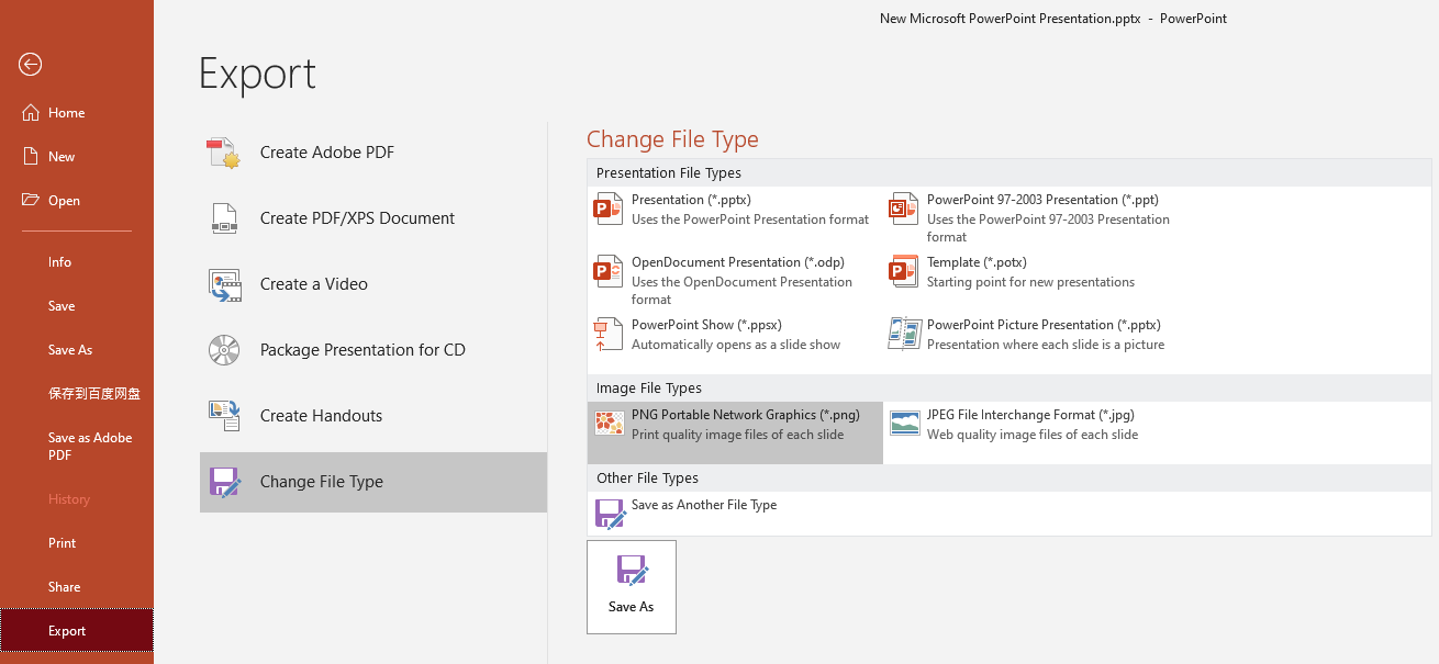 Click the Save button. A dialog box will appear asking how you would like to export the slides: