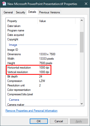- To confirm the new resolution settings took effect, locate your exported image file, right-click it and select Properties from the context menu.